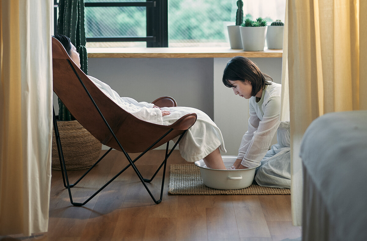 クレイと軽石のフットスクラブで足元をクリーンアップしてから、浄化作用の高い4096Hzの音と振動で心と身体を軽やかに整えるサウンドセラピーに身を委ねる。呼吸を整え、ストレッチとドライマッサージで凝りや緊張をほぐしたら、マイルドなこんにゃくのスクラブで全身をすべすべに。緩めた後は、頭を冷却するクライオセラピーですっきり、覚醒に誘う。
