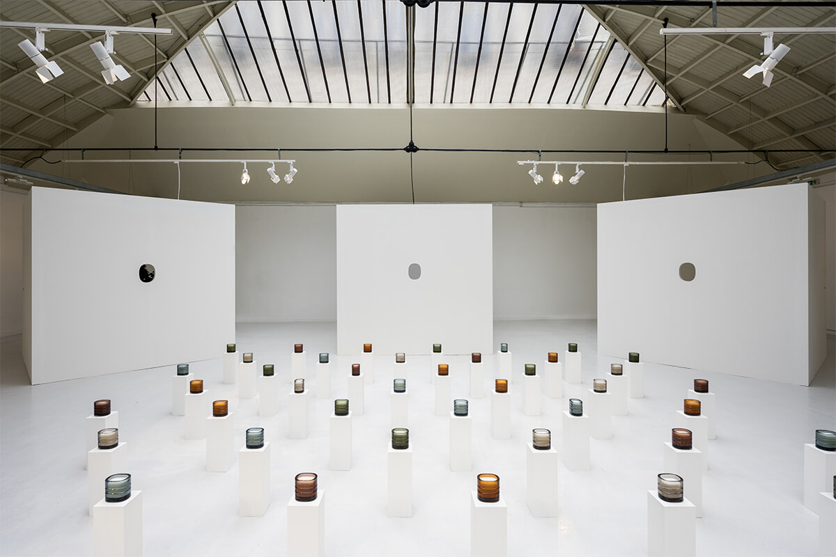 5つの香りは、従来のホワイトキャンドルと異なり、香水のようなコンポジションで名調香師オリヴィア・ジャコベッティが手がけた。だが、クリスティーナは香りがまだない段階で、それぞれの土地の説明を手がかりにイメージを膨らませてガラスの色を決めたという。