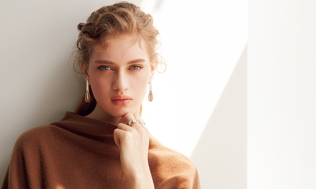 ニット¥132,000/ヴィンス(コロネット) ピアス¥57,200、リング人指し指¥41,800、中指¥36,300/以上ノアーク(エスケーパーズオンライン)