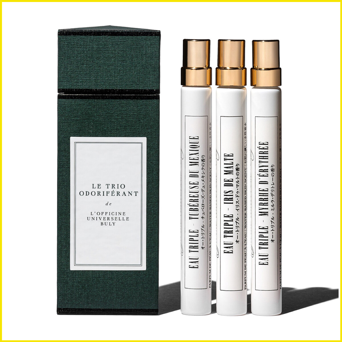 水性香水オー・トリプル、クラシックコレクション16種の中から、好きな香りを3種選んで完成させるユニークなコフレ。携帯しやすいミニボトルは外出先での香りの上書きにも便利。オフィシーヌ・ユニヴェルセル・ビュリー ル・トリオ・オドリフェラン(3本セット)各10ml ¥11,220(公式オンラインストア限定発売)/ビュリージャパン