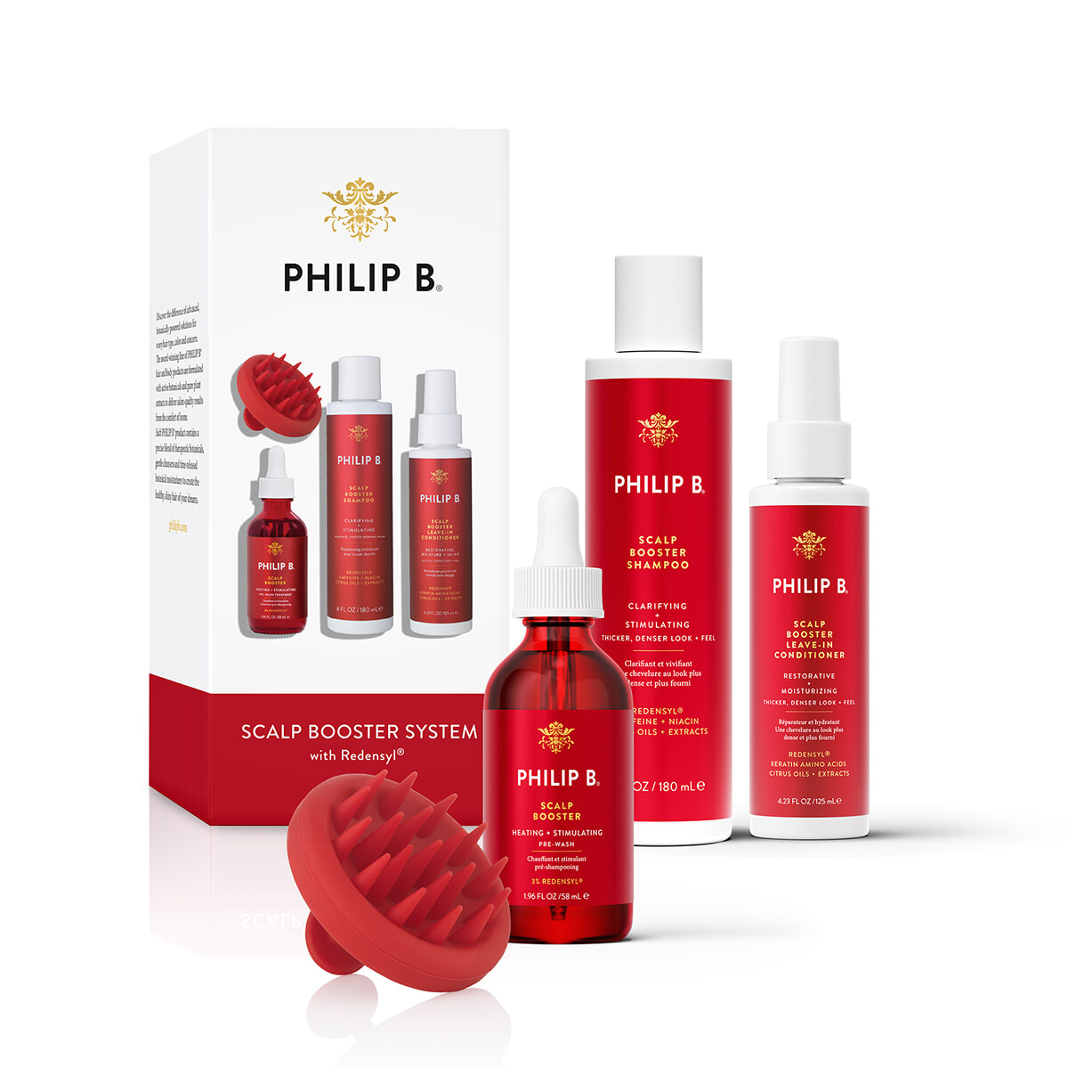 シリーズ3品現品にスカルプマッサージャーをセット。フィリップ B. スカルプブースターシステムセット ¥37,400/エスティ フィロソフィ