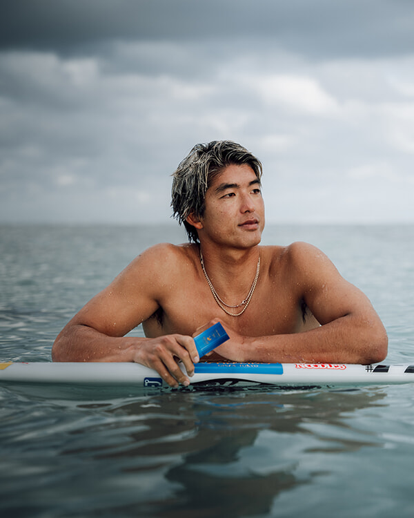 いよいよ迫る2024年パリ・オリンピックのサーフィン競技日本代表として、熱い注目を集めるプロサーファーの五十嵐カノア選手。そんな彼は現在、サーフィンの世界的団体World Surf LeagueとSHISEIDOが実施する、サンケア商品を通じたグローバルな海洋保守・保全活動「SHISEIDO BLUE PROJECT」のアンバサダーを務めている。