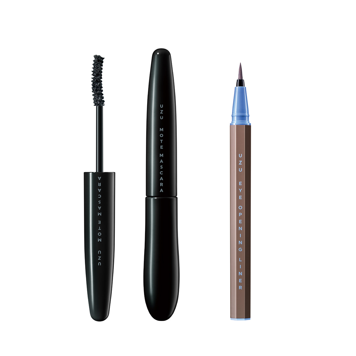 カラフルな色提案、お湯で落とせる機能性、ケア効果など、低価格でアイメイクの常識を塗り替えてきた。全面アップデートで、美しい発色と塗りやすさ、描きやすさを追求し、ハイスペックに。●マスカラ ブラック、ライナー グレー/ともにウズ バイ フローフシ