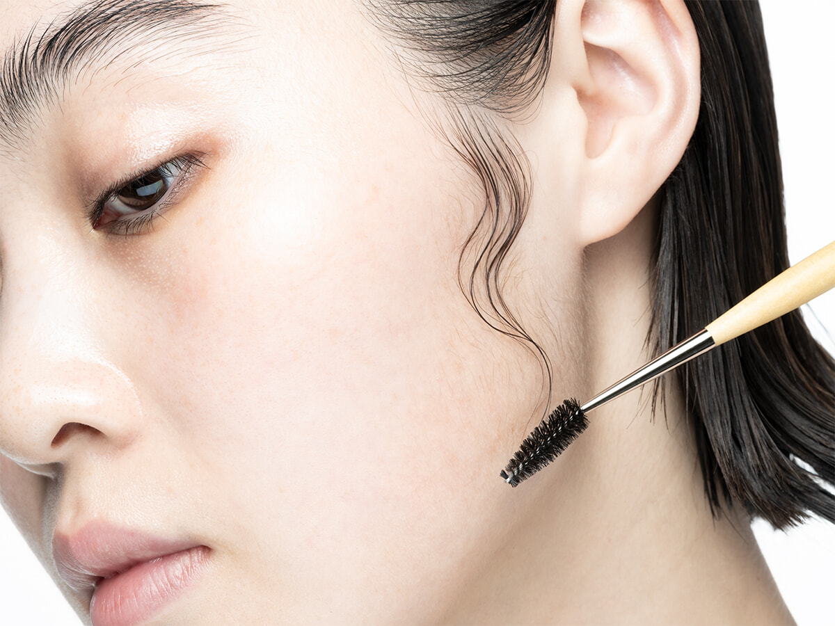 水野はブラシとともに眉用ワックスも開発。眉毛1本1本を根本から上向きに整えて、ほどよくフィックスさせる。