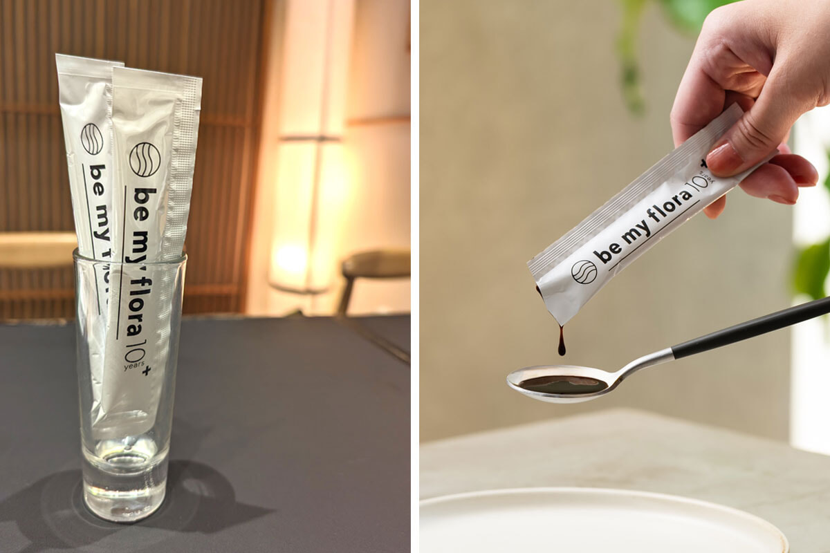 この野菜や果物を発酵させたものに、乳酸菌と天然由来の発酵抽出物を追加したペーストには、善玉菌そのものである「プロバイオティクス」と、善玉菌を育てるエサとなる「プレバイオティクス」の両方が含まれるそう。お店の方いわく「食前に飲むと、血糖値の急上昇を防ぐ働きも期待できるんですよ」とのこと。