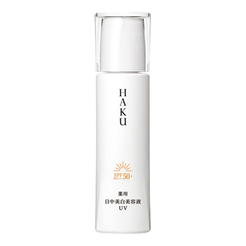 紫外線などの影響で炎症因子が発生し、シミがつくられる日中のメラニン生成ルートを遮断。2種の美白有効成分で明度を高め、発光下地効果も。HAKU 薬用 日中美白美容液UV〈医薬部外品〉 SPF50+・PA++++ 45ml ¥5, 280(編集部調べ)/資生堂