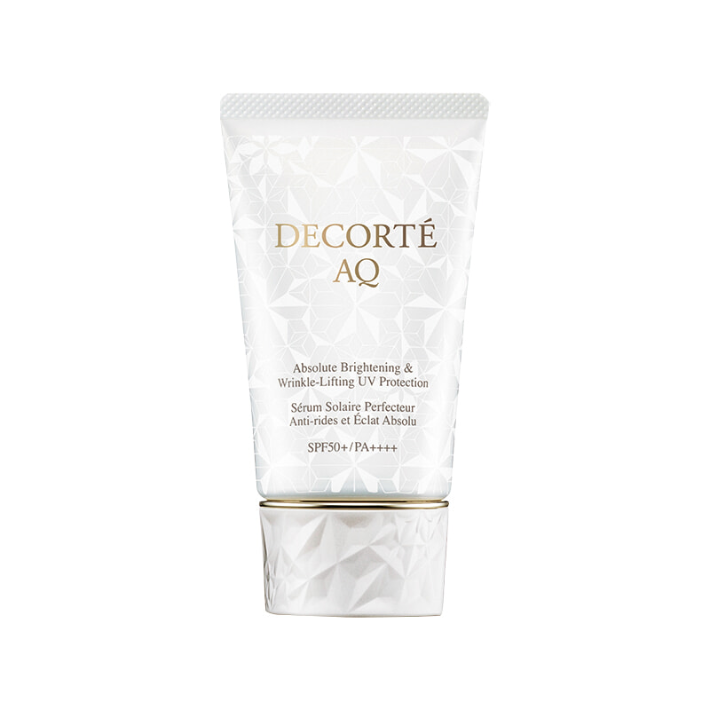 有効成分、ナイアシンアミドとトラネキサム酸を配合。エイジングにも先手を打つマルチなUVケア美容液。ピンクベージュで肌色も補正。AQ アブソリュート UV プロテクション ブライトニング&リンクル〈医薬部外品〉 SPF50+・PA++++ 55g ¥11,000/コスメデコルテ