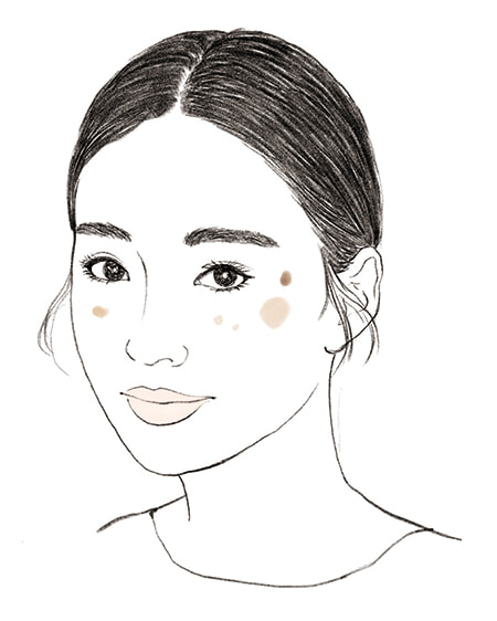 「紫外線を浴びてメラノサイトが活性化し、メラニンが過剰につくられて表面化した最も一般的なシミが老人性色素斑。加齢も大きな原因です。大きいシミや濃いシミは黒い色に吸収されるレーザーを照射し、しばらくテープで保護してかさぶたにして取ります。小さく薄いものやソバカスはIPL(光治療)で浮かせて消去。ニキビ跡や摩擦が原因の炎症性色素沈着、遺伝性やホルモン由来の肝斑も多く見られます。ただ、肝斑の場合は、エネルギーの強い短波長のレーザーやIPLで逆に濃くなるなどのトラブルもあり、医師の見極めが重要です。年齢を重ねると原因の異なるシミが混在していることが多く、いくつかの治療方法を組み合わせることも。1回で治療が終了する人は少なく、最低でも2カ月程度かかると覚悟して」