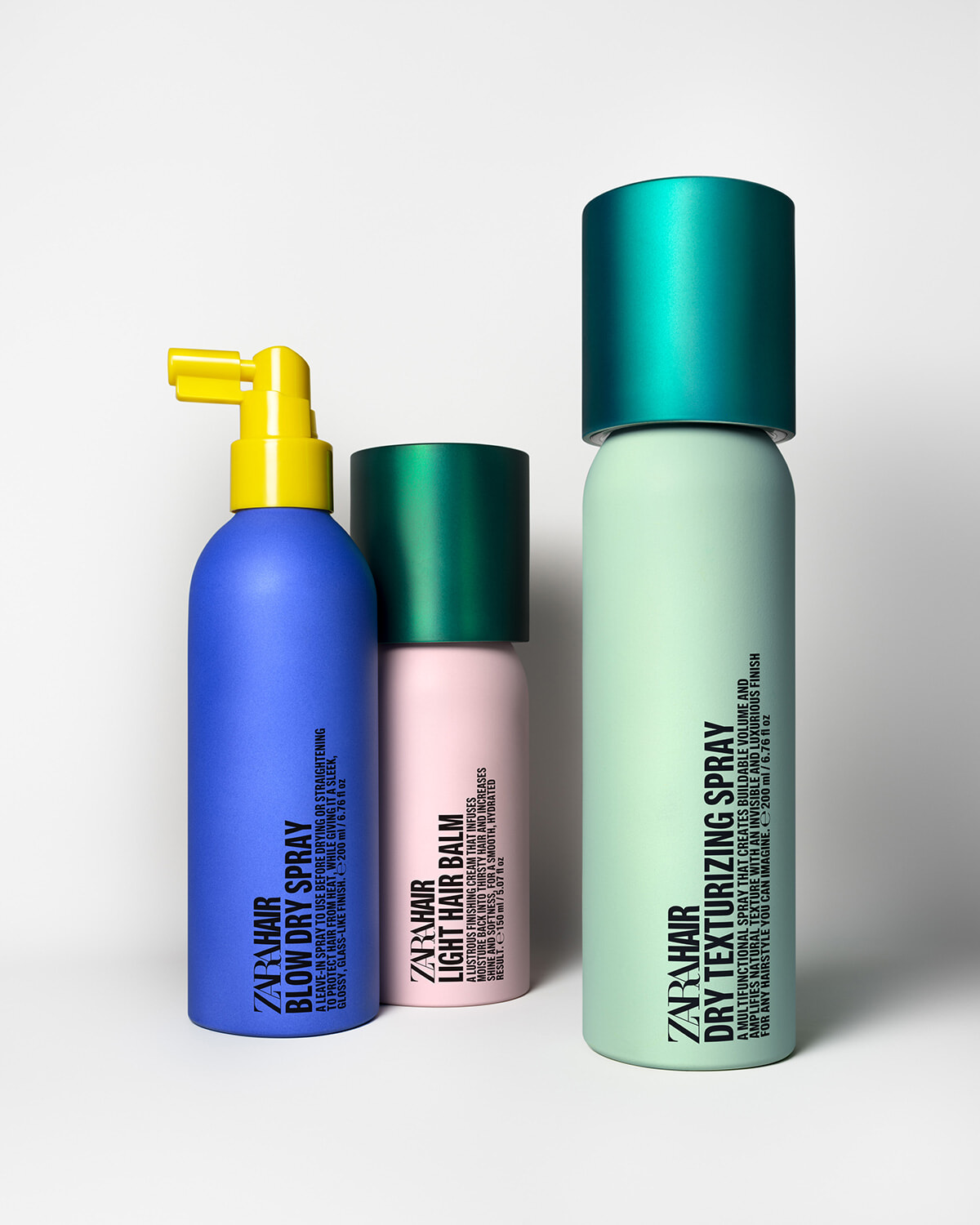 この春、ザラのヘアスタイリングライン「ZARA HAIR (ザラ・ヘア)」がデビュー! 4月4日にヘアスプレー、ドライテクスチャライジングスプレー、ボリューマイジングムース、ヘアバーム、カールアクティベーター、ブロードライスプレーの計6品が発売となる。