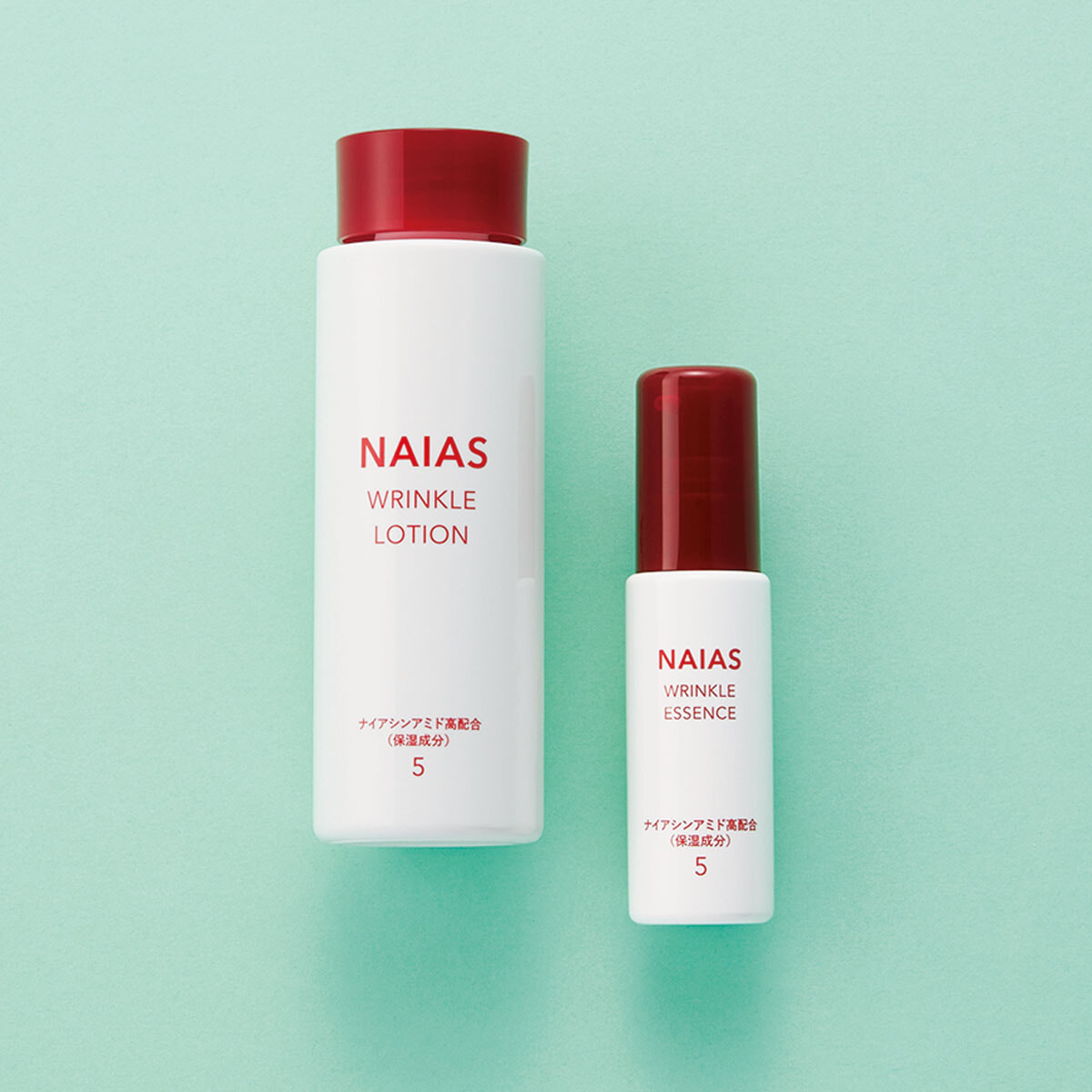 左から、ナイアス リンクルローション 150ml、同 リンクルエッセンス 30ml 各¥1,980/ともにヴィーダラボ
