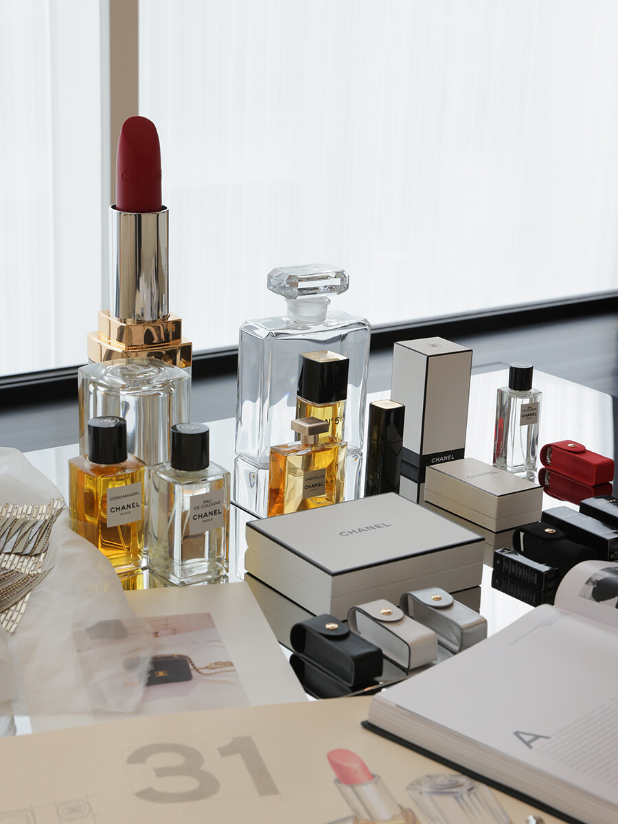 すべてに陰と陽があるように、シャネルにはコントラストがあります。脈々と受け継がれてきたヘリテージ、揺るぎない強固なDNAはありつつも、ガブリエル・シャネルは常に、前衛的であろうとし続けました。たとえばシャネル Nº5。ご存じのとおり、1921年に誕生し、100年の時を超えてなお愛され続ける、シャネルの屋台骨ともいえる存在ですが、じつは時代とともにマイナーチェンジをしていることをご存じでしょうか? 常に、ボトルが「いま」にマッチしているか。それを見極めるのも私の仕事。シャネルは、一度世に出したクリエイションは、決してやめることなく、作り続けます。過去を尊重するのです。だからこそ、同時に、過去に甘んじてはいけない。私たちもガブリエルのように、時代の息吹を感じながら前衛的であり続けることを心がけています。トランテアン ル ルージュも、まさにそうして生まれた革新に違いありません。また、いまという時代、企業としての社会的責任も求められます。それを「仕方なく受け入れよう」ではなく、「だからこそ、さあ、何ができる?」と前進し、進化する。それもシャネルをシャネルたらしめる所以だと思います。