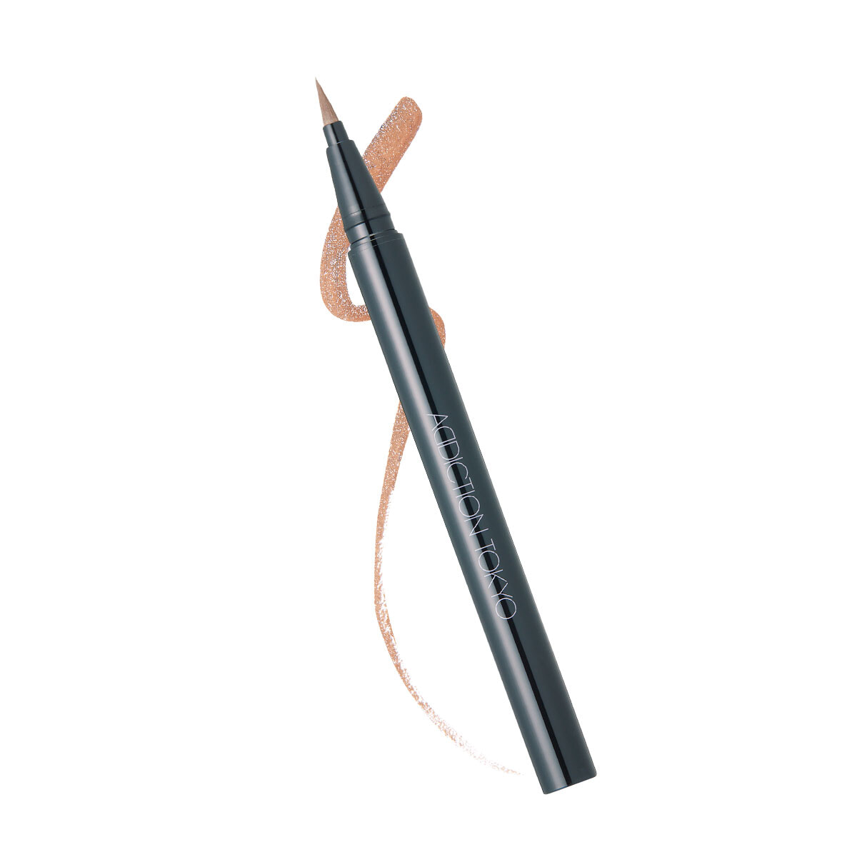 光沢感のあるカシミアベージュの色は、線を主張せずに目力を底上げ。太めに引いても優しいニュアンスに。”ソフトグラフィック”なので、下まぶたの涙袋の陰影づくりにも活躍する。
