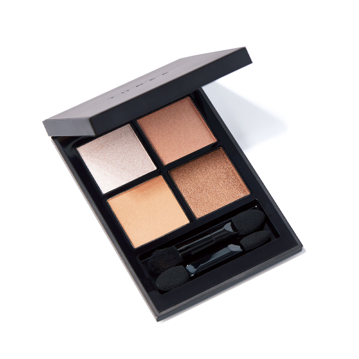 パール、サテン、マット、メタリック、4つの質感と、トープニュアンスの4色を掛け合わせたパレットから、ジェンダーフルイドなベージュ系を。グレイッシュピンクと光のニュアンスが、モダンな色気を宿す。