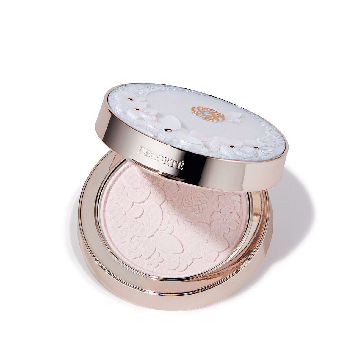マザーオブパールを思わせるコンパクトと繊細で柔らかなパウダーに、花々と蝶が刻まれた14代目のデザイン。置き鏡にもなるオリジナルハンドミラー付き。