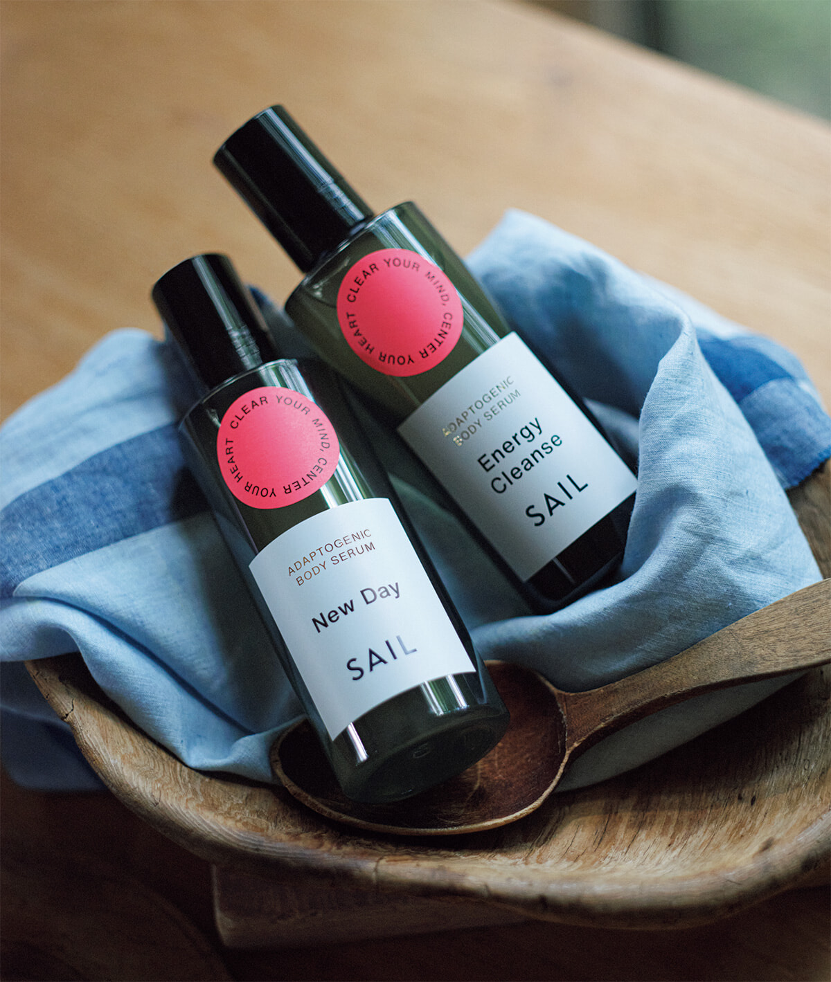 SAIL|アダプトジェニック ボディ セラム ニューデイ(左)、エナジークレンズ(右)