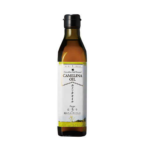 アブラナ科のカメリナサティバ種子をコールドプレス。加熱してもオメガ3が壊れず、酸化しにくいので開封後も常温保存が可能。カメリナオイル 270g ¥1,976/ブルージュール・ジャパン