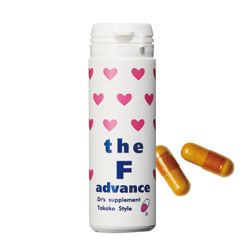 エクオールと、その産生を促進するラクトビオン酸を配合。女性ホルモンに働くハーブ2種も加え効果を高めた。The F advance 60錠¥8,640/タカコスタイル