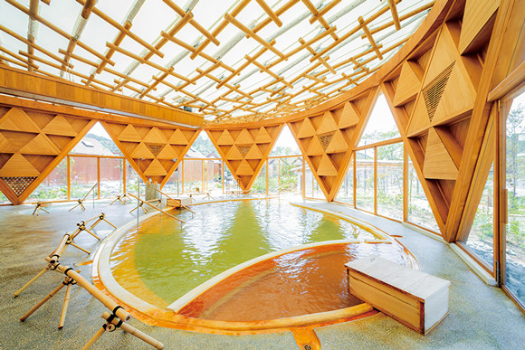 大分県の長湯温泉は、日本では数少ない自然炭酸泉。「重炭酸イオンが豊富に溶け込んだ泉質です」(小星)。ドイツの湯治施設に着想を得て、2019年にオープンしたこの温浴施設では、露天風呂やジャクジーのほか、水着で湯中歩行や運動浴ができる。レストランや14棟の宿泊コテージも併設されているので、痛みや冷え性などの改善目的での滞在にもおすすめ。
