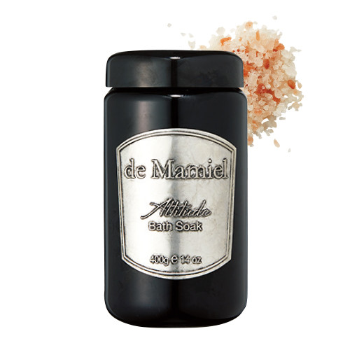 エプソムソルトにヒマラヤ岩塩、死海塩を配合。心身を整える精油ブレンドも◎。デ・マミエール バスソークAO 400g ¥12,100/キャンドルウィック