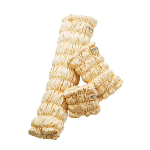 締めつけない&蒸れない365日使えるウォーマー。肌触りのよいシルクは、就寝時にもぴったり。シーンや季節に合わせて丈を選んで。左から、イオンドクター シルクレッグウォーマー¥26,180、同 シルク足首ウォーマー¥11,880、同 ハーフサイズ¥10,120(各2本組)/以上ジェイ・エス