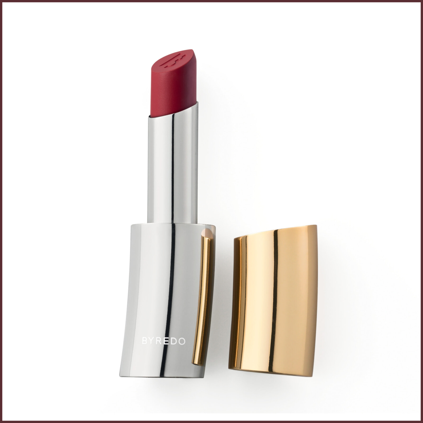 表情をモダンに魅せるプラムレッド。溶け込むようなソフトなテクスチャーで唇を均一に彩ってくれる。思いどおりのシェイプを描けるティアドロップ型のフォルムにもこだわりが。バイレード リフィラブル リップスティック マット オンブラ¥8,690/バイレード ジャパン