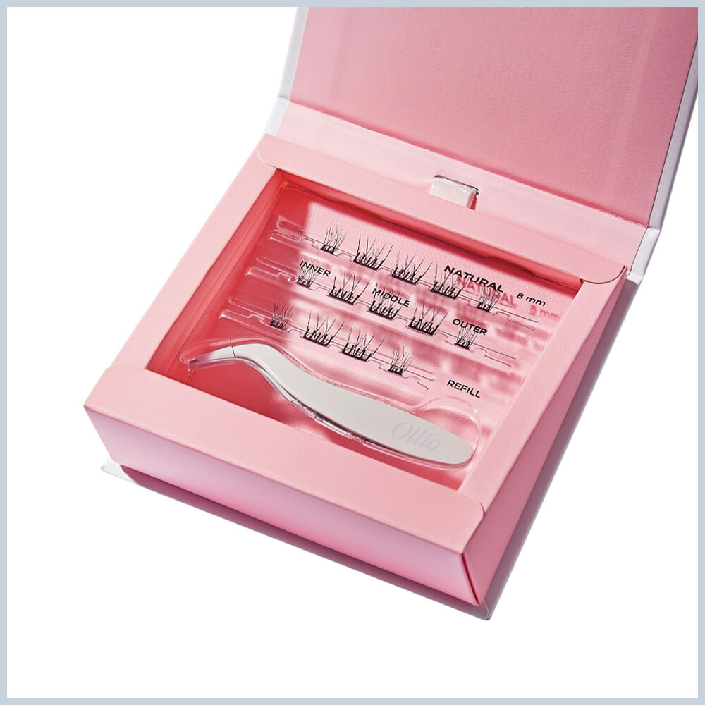 フロントロウに座っていても神々しく発光しているように見えるほど、とんでもなくブルベな肌の持ち主、ハン・ソヒ。ノイズを消したシームレスな肌を粉雪のようなパウダーで仕上げたら、目元はアイライナーでキュッと引き上げるか、ぐるっと囲み目に。そして一番の”ハン・ソヒ アイ”の特徴はまつ毛。全体をぐいっと根本からビューラーであげ、黒マスカラで細く長く仕上げたら、最後に黒目の上を重ね塗りして目の縦幅を強調。まつ毛の毛量が足りない場合は、ここにつけまつ毛をつけても。目の重さに対して唇は透け感あるちゅるんとした粘膜系リップで可憐さを。色味はベリー系の色をチョイスして、小悪魔感ある印象に。