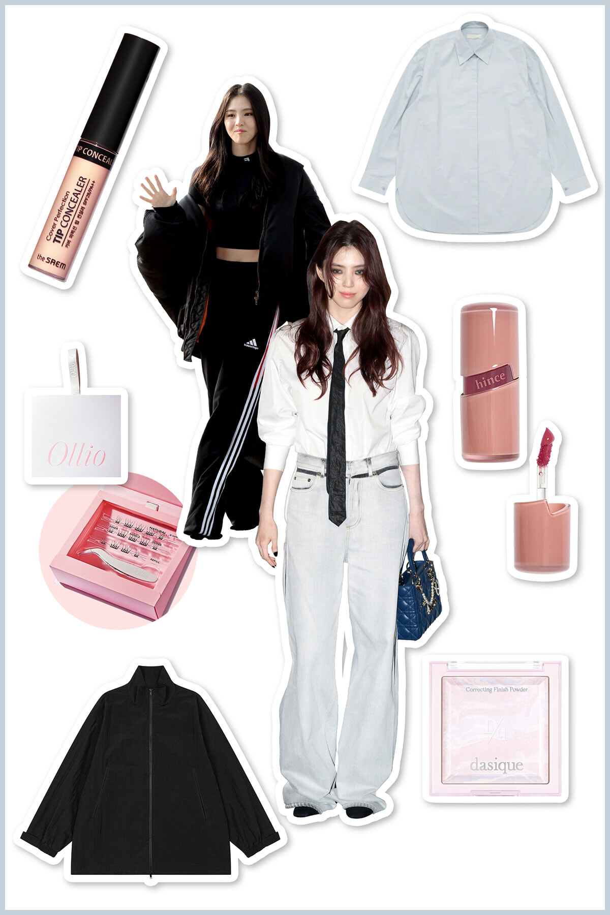私服ではミニスカートを履いていることも多いが、今回注目したのはパンツスタイル。ひとつは白シャツにネクタイの進化系スクールルック。もうひとつはルーズに着こなしたスポーツスタイル。どちらもポイントは薄く鍛えられた腹筋。腰ばきデニム&スリーストライプスジャージからのぞく腹チラが、ちょい不良なムードを演出。ときに細すぎるとファンから心配されるほど華奢なハン・ソヒだが、そのボディを生かした“服を引っ掛けた”着こなしで自らの個性となるイメージをきっちり体現している。