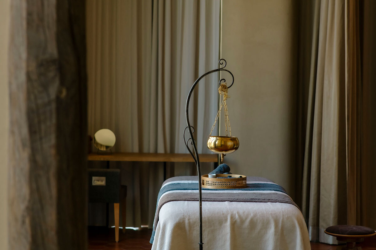 フットバスで足を浄めてもらったら、ベッドに横たわり音叉の音色からスタート。私が受けた「コンプリート リニューアル」では、オイルを用いて全身をマッサージするアビヤンガが90分、またそのオイルを頭皮や首、肩に吸収させるシロアビヤンガが30分と、たっぷり時間をかけていきます。アーユルヴェーダの施術は筋肉のコリをほぐすというより、身体の中で重要なエネルギーを司る107つの”マルマポイント”を刺激しながらオイルを浸潤させることが主な目的。体質に合わせたハーバルオイルが、体内に溜まった毒素を押し流す手助けをしてくれるそう。大きく優しいストロークで、たまにつまむようなタッピングの動きも交えながら、いまの身体が求めるオイルをたっぷりとなじませていきます。その過程はただただ心地よく、寒さで固まり縮こまった全身が、じわじわとほぐれてゆく……。この瞬間、私の身体はさしずめお味噌汁に投入されたカラッカラの乾燥ワカメ、あるいはヨーグルトにひと晩浸したドライフルーツ、のようでした。