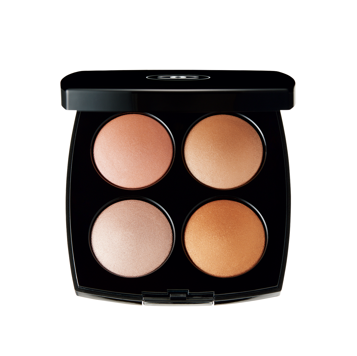 アイシャドウやハイライターなどマルチに使える、パーリーな光沢感の4色パレット。左上のピンク コーラルや右下のコッパー ゴールドはチークとしても。大きなパレットだから、デコルテやボディにもたっぷりと。