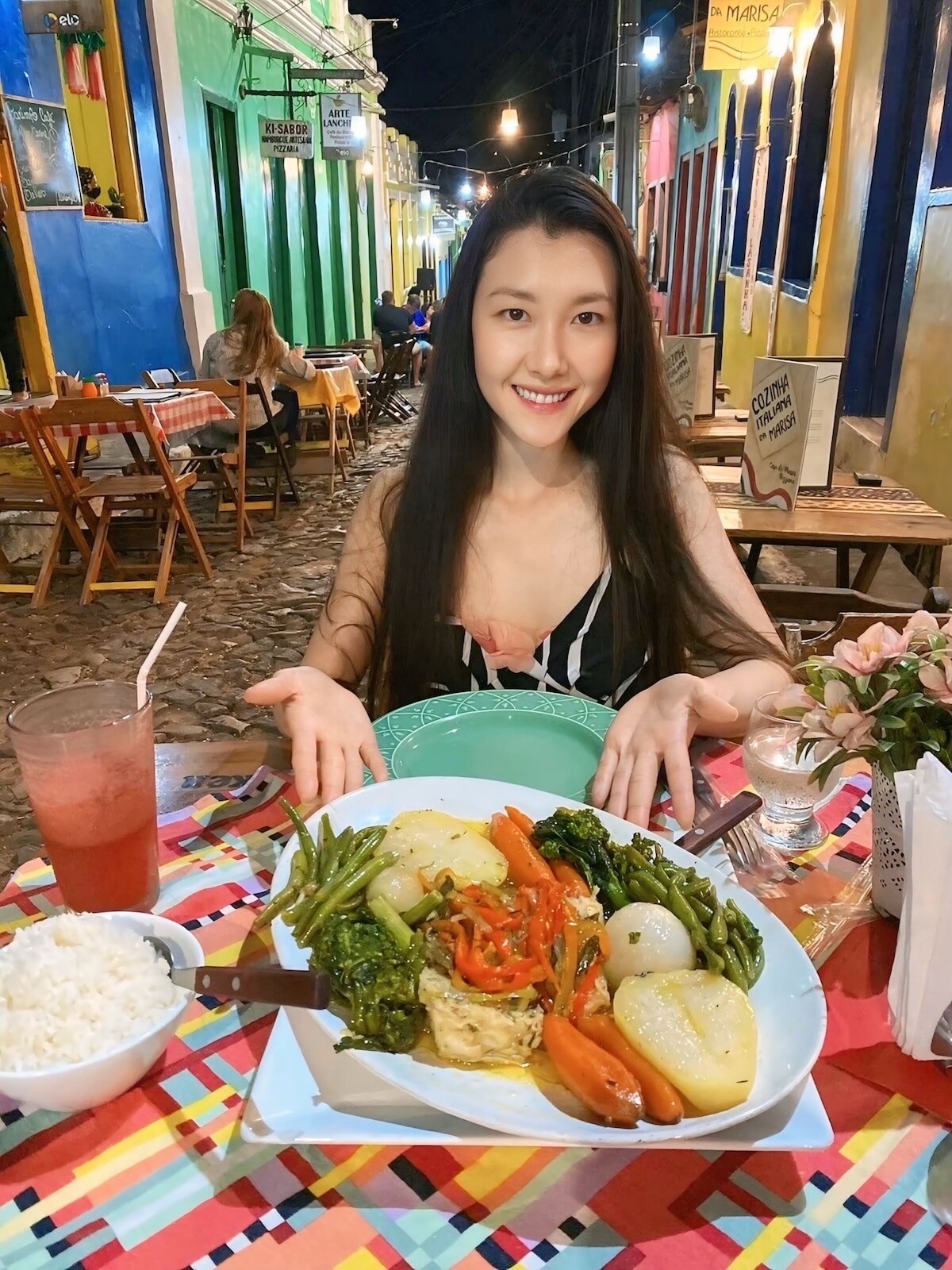 「とはいえ、ブラジル滞在中はどうしても肉中心になりがちなので、野菜も食べたくて選んだお店がこちらです。カラフルな街並みのレンソイスで、地元の人にも人気のレストランでした。お肉はもちろん、副菜にソテーやスチーム野菜がたっぷりで、大地の恵みが全身に行き渡る感じでした」