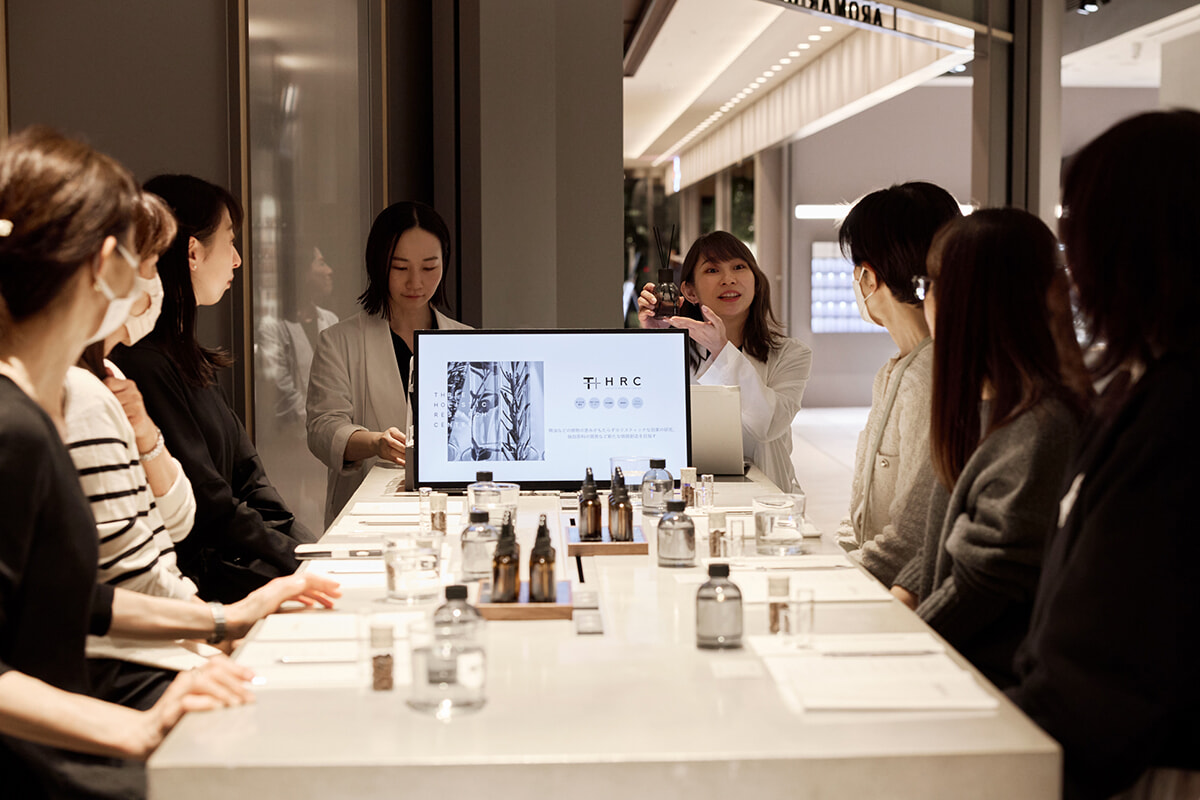 3月18日、19日には、ホリスティックなライフスタイルを提案するスリーとのコラボレーションで、「本能に届ける精油の香り。スリーのディフューザー作りワークショップ」と題した会を開催。参加者はスリーが大切にする国産精油について学びを深め、いまの自分にぴったりの香り作りに挑戦した。その様子をレポート!