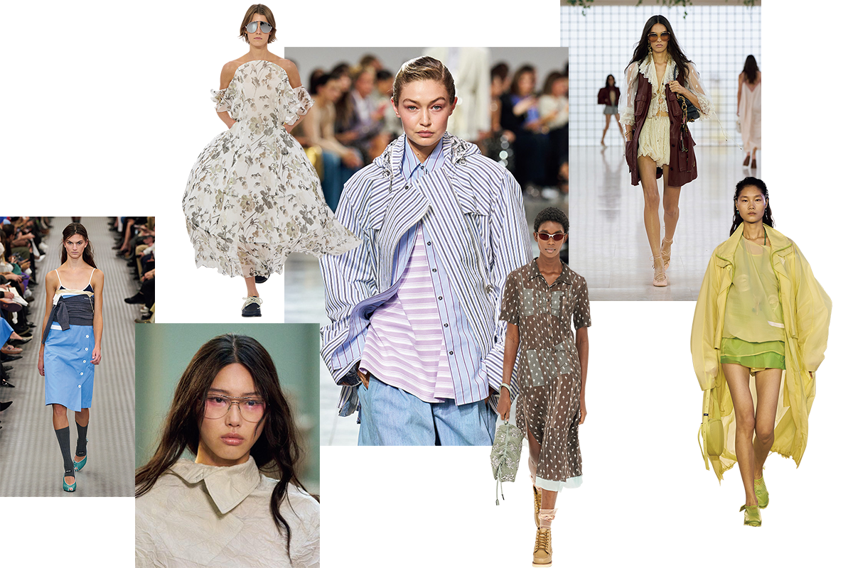 ロマンティックムード返り咲き! 花柄やドット、シャツやスポーツテイストなど、オーセンティックなものを軽やかにレイヤーして新鮮に見せるスタイルが熱い。(丸山佑香)