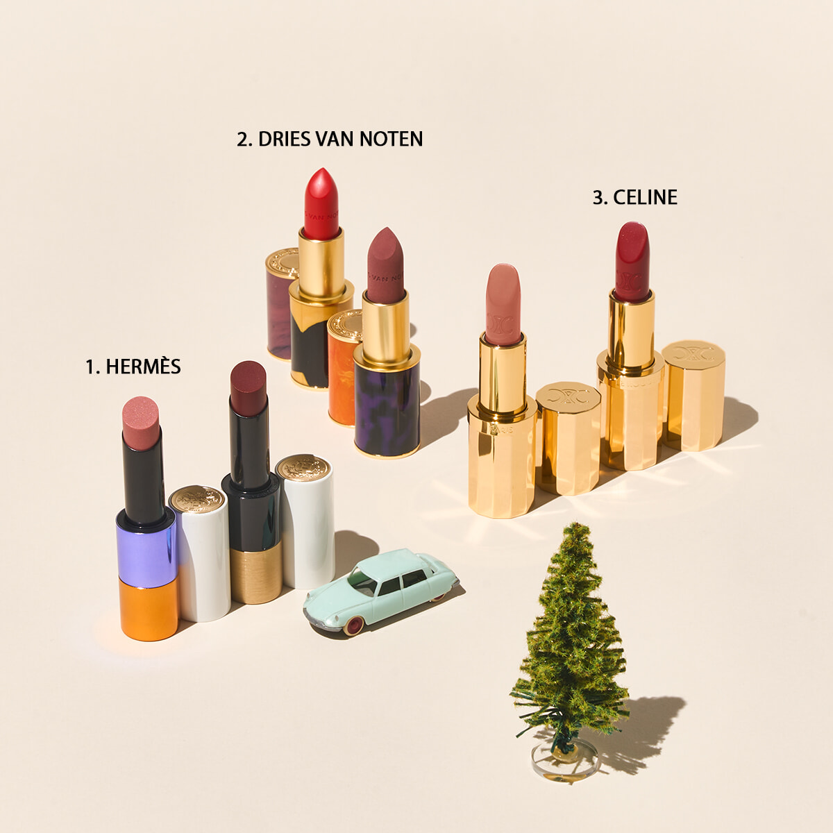 セリーヌ ボーテの幕開けを飾るサテンフィニッシュの口紅。ファセット加工のゴールドケースもとびきりクール。
