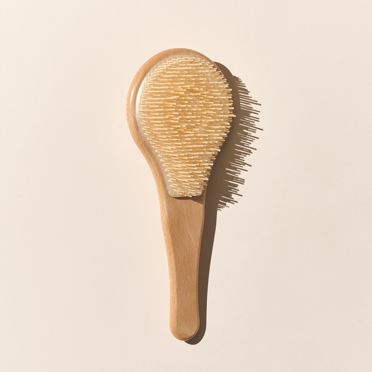フランスのコスメ大賞を受賞した、ヘアスタイリスト開発の技ありブラシ。長さ太さの異なるピンをバランスよく配列することで、髪や頭皮にかかる負担を軽減、ブラッシングが快適に。