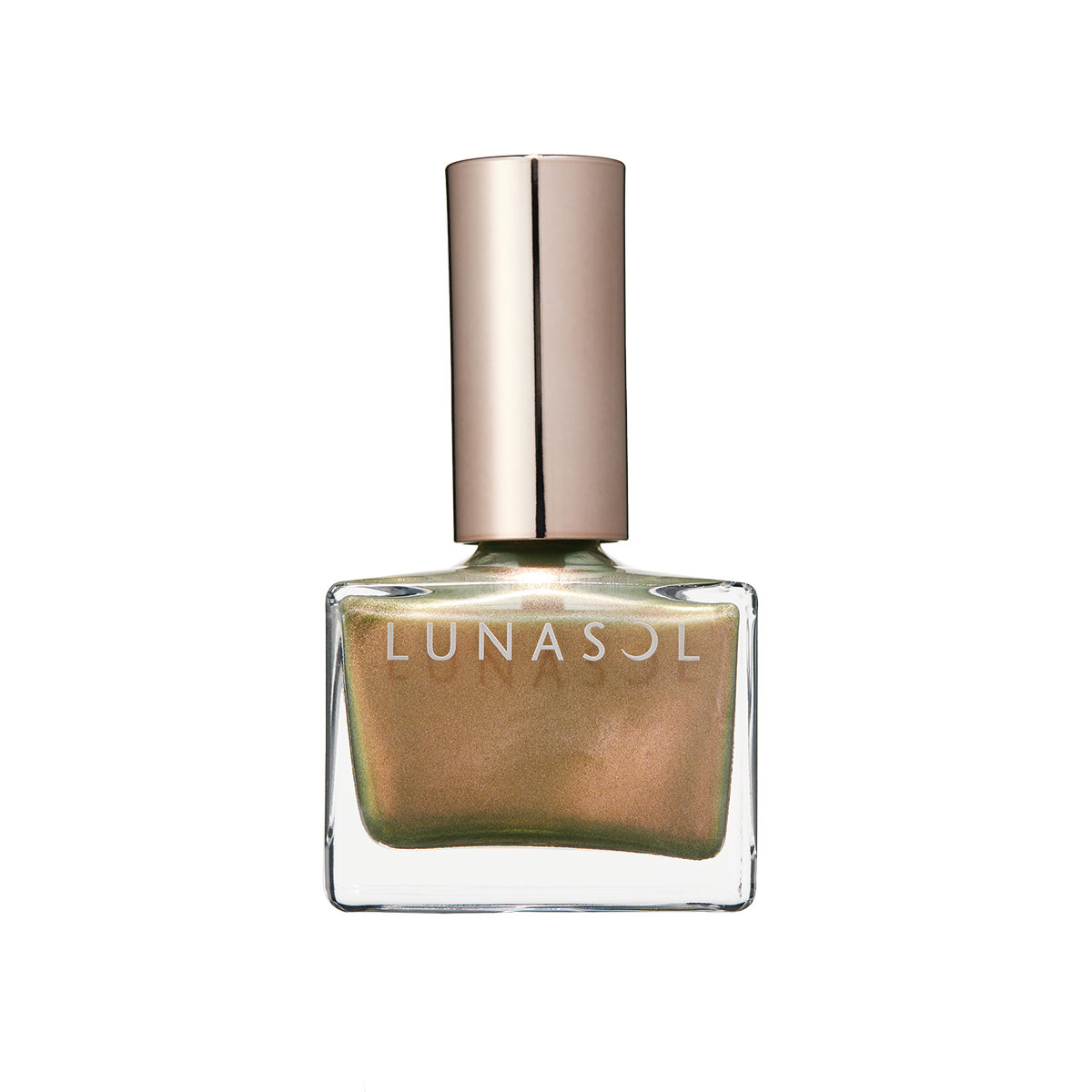 深みのあるカーキにカッパーの偏光パールが揺らめいて、指先にミステリアスな魅力を添える。