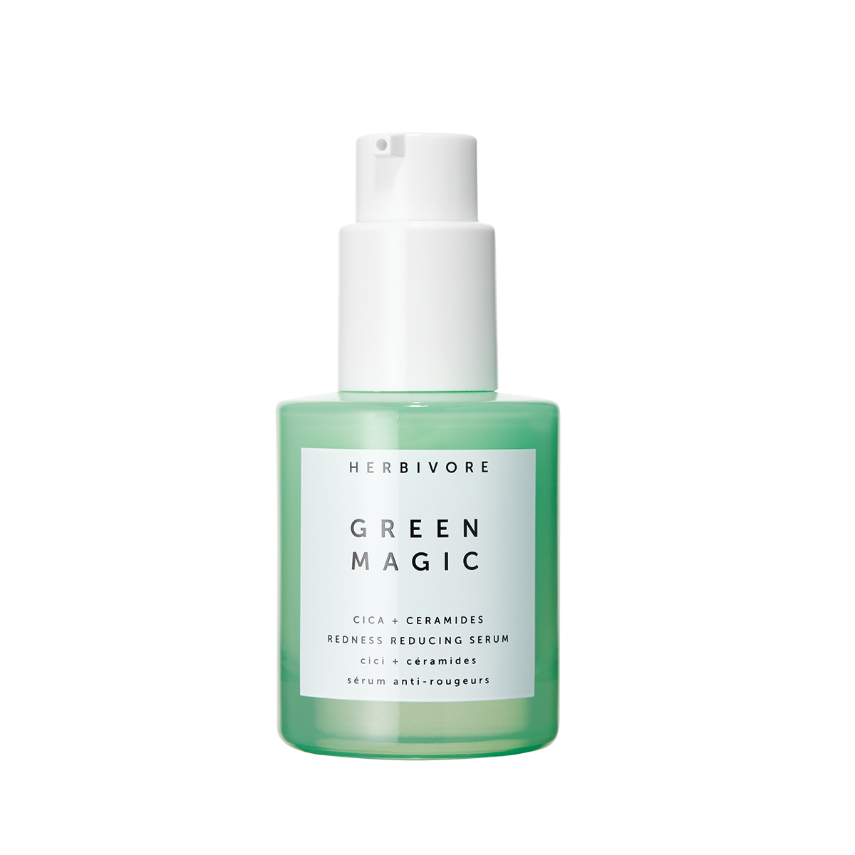 シカとヒト型セラミドを配合した敏感肌用美容液は、肌にすっとなじんで赤みを鎮静。フレッシュハーブがほのかに香る。