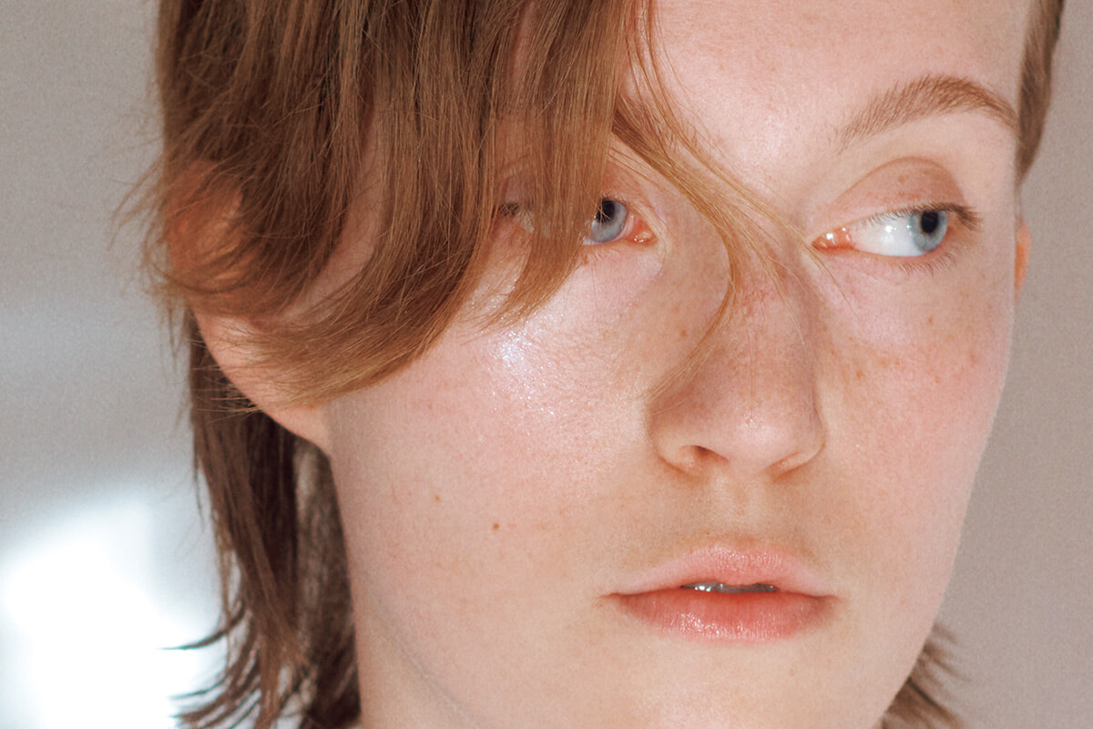 青みの薄膜を重ねた、温度感低めの肌づくり。