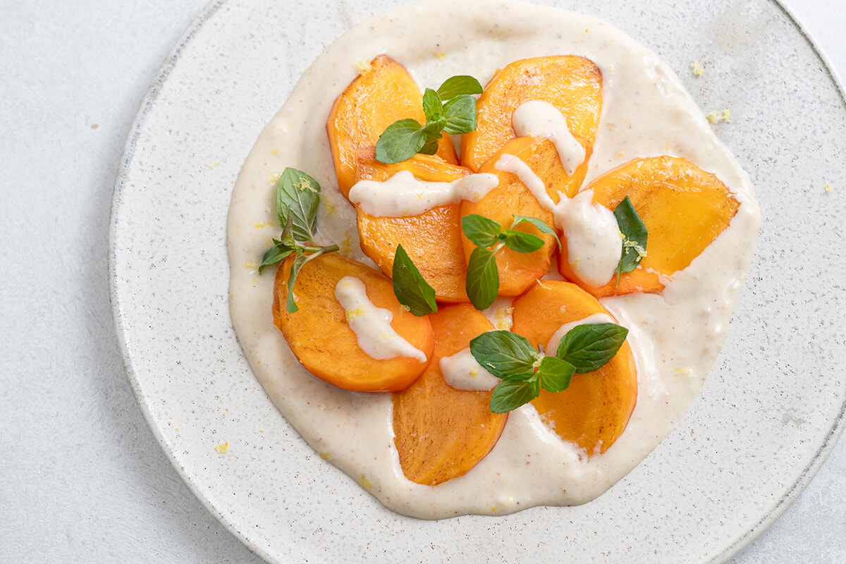 3. 器に2の半量を広げ、1を並べる。残りの2をかけ、ペパーミントを散らす。