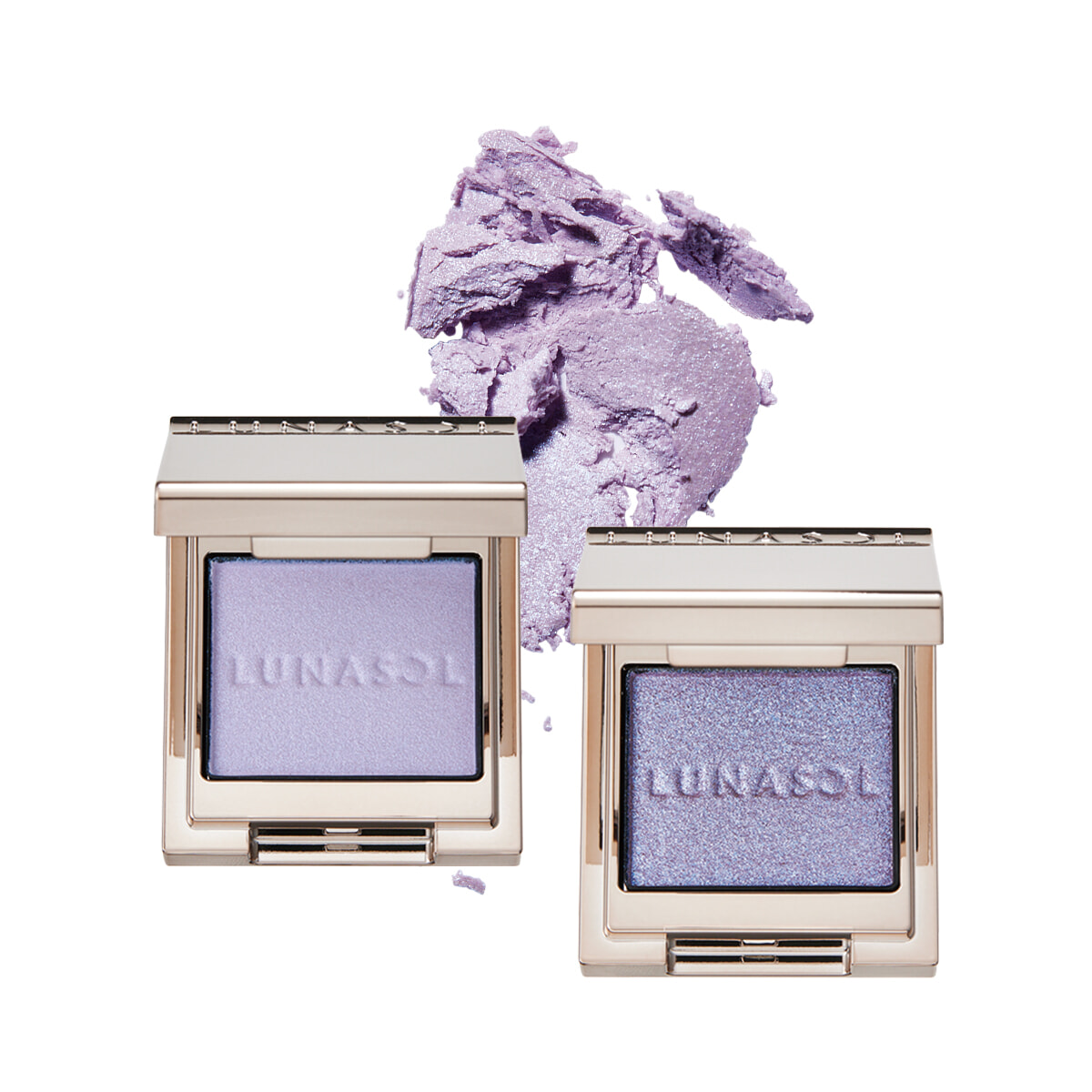 透け感と輝度の高いパールがしっとり色づき、まばゆい煌めきを放つ単色シャドウ。ラベンダーの濃淡でセンシュアルな目元に。
