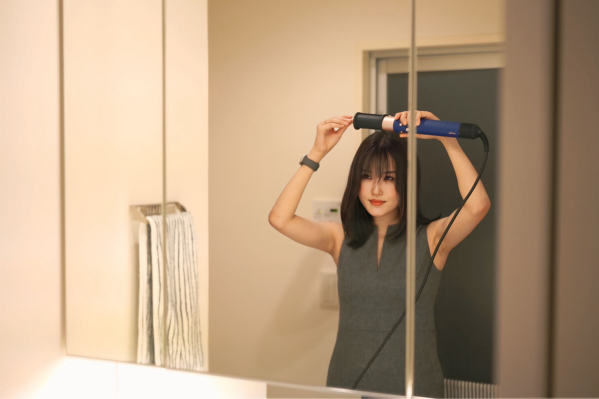 「コテを使っていたこともありますが、高温になるので子どもがうっかり触ってしまわないか心配でした。ダイソンなら、髪のドライからスタイリングまで、1品で叶う点が魅力です。スタイルをいろいろ試す楽しみもできました」