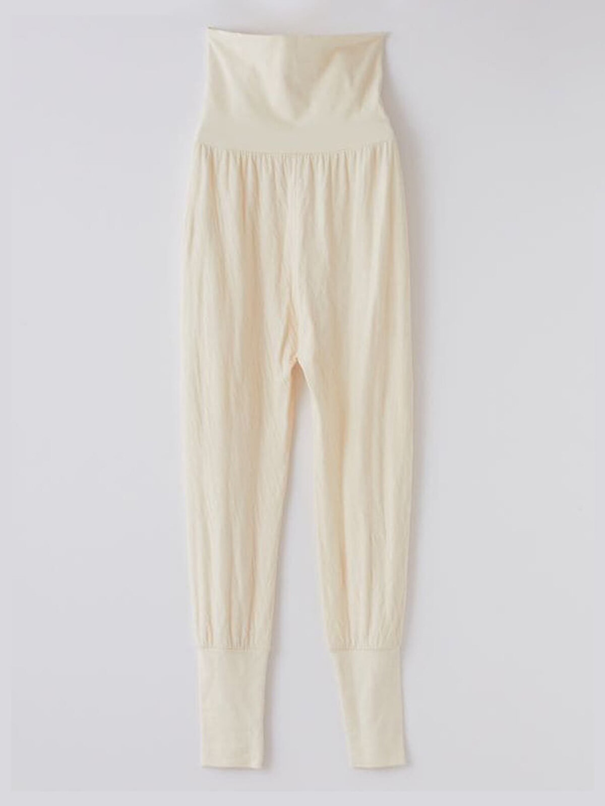 MOTOKOさんが愛用しているのは、腹巻きとレッグウォーマーを兼ねたようなオーガニックコットンのパジャマパンツ。「足首部分がめくれず、冷えないのが◎」リリー腹巻きレッグWパンツ ナチュラル ¥14,300/ナナデェコール