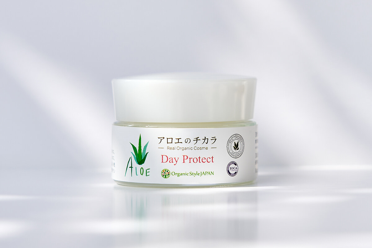 デイクリームとして、日常の生活紫外線や乾燥ダメージから肌をプロテクト。しっとりするのにベタつかない使用感や、ほのかに香るクロモジとラベンダーの香りが心地よい。アロエのチカラ デイプロテクトクリーム 20ml ¥4,235/オーガニックスタイルジャパン
