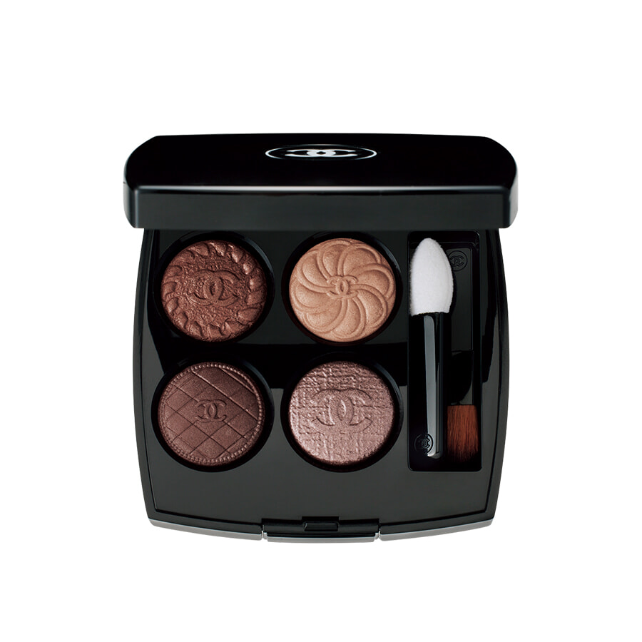 ボタンのデザインを施したアイシャドウは、今秋のマストハブ! 4種ある中でも、キルティング、ツイード、チェーン、カメリアが刻まれた赤みブラウンのパレットは、女らしさが引き立つ永久定番。
