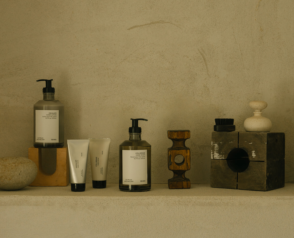 2016年にスタートしたフラマのケアコレクションは、現在コペンハーゲンのスタジオ兼店舗として使用している、1878年創業の薬局の歴史的な空間にインスピレーションを得て誕生したもの。自然素材のリサーチや香りのディレクションを含むすべての製品開発はこのスタジオで行われている。厳選された素材を使用し、デンマークで丁寧に作られるフラマのケアコレクションの特徴は、場所や建物、旅の記憶から着想を得て調香されたジェンダーニュートラルな香りとパッケージのマテリアルとデザインにある。
