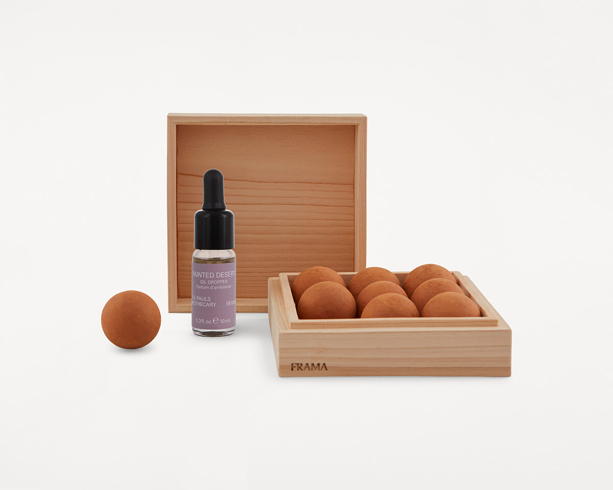 韓国の土と木で作られたナチュラルなルームディフューザー。オイルの香りを染み込ませるための9つの赤土の球とオイルがセットになっている。フロム ソイル トゥ フォーム ペインテッドデザート ¥28,600(先行発売)