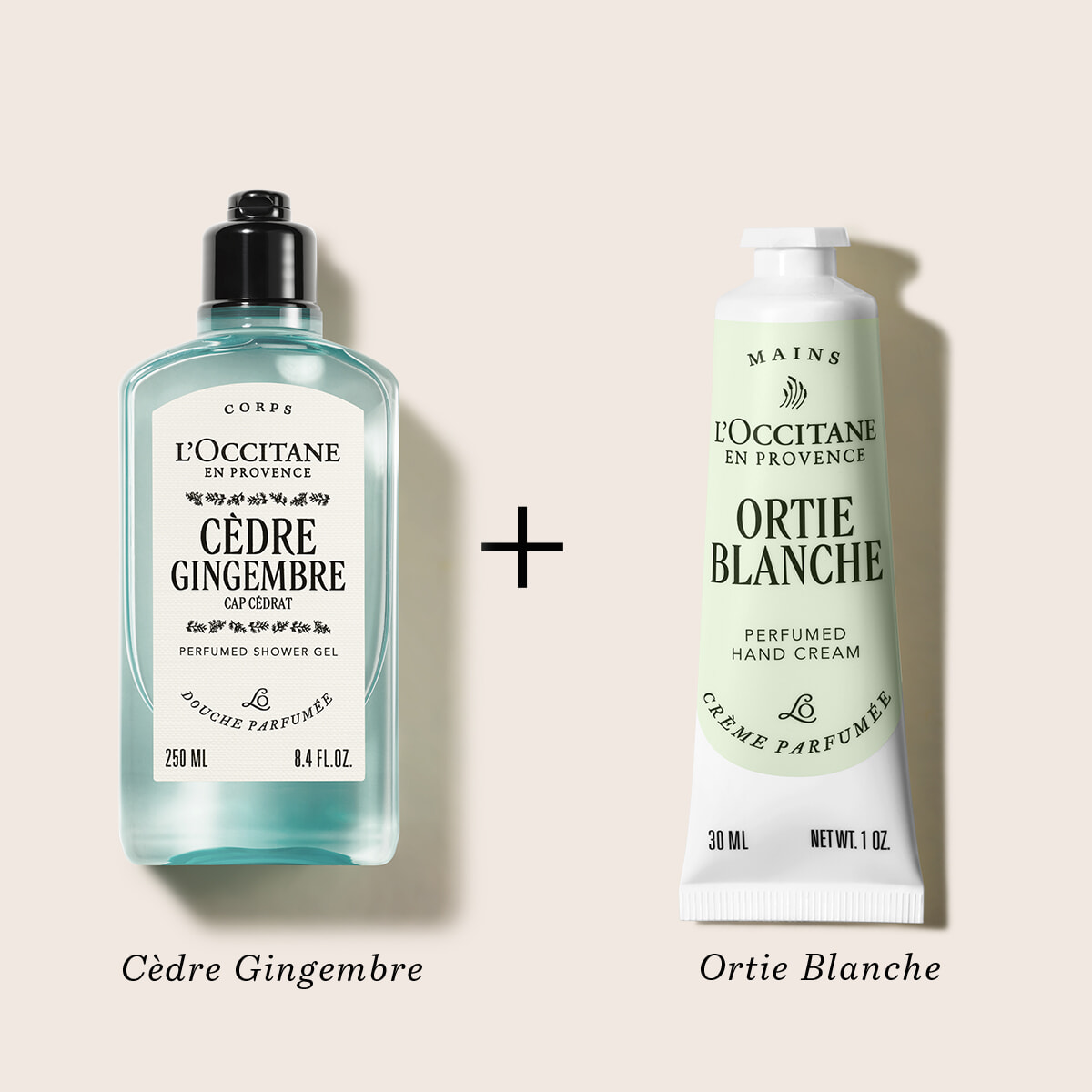左から、シダージャンジャンブル パフュームド シャワージェル 250ml ¥3,960、オルティブランシュ パフュームド ハンドクリーム 30ml ¥1,870(ともに10/1発売)/ともにロクシタンジャポン