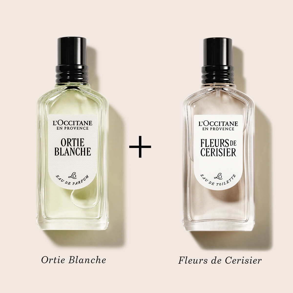左から、オルティブランシュ オードパルファム 50ml ¥12,430、フルールドスリジエサクラ オードトワレ 50ml ¥8,470(ともに10/1 発売)/ともにロクシタンジャポン