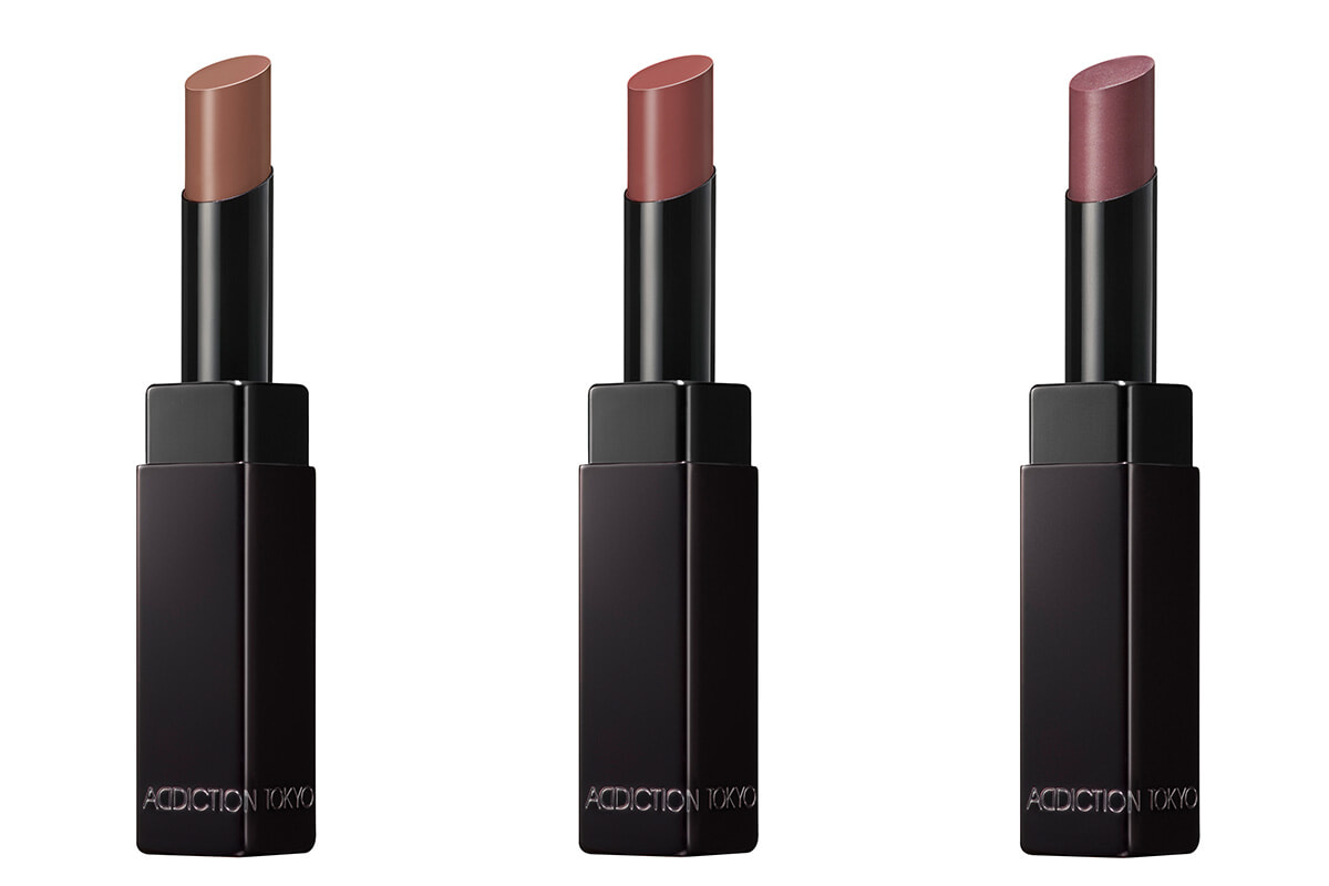 この秋アディクションの新たなシグネチャーリップとしてお目見えしたのは、リップスティックでありながらまるでリキッドで仕上げたようなツヤとプランプ感を実現する、90%が美容液で構成されたアイテム。のせた瞬間に唇の温度でとろけてなじみ、ぷっくりと立体的な彩りを加えるのはもちろん、圧倒的なうるおいで守られている感覚に。まさに口紅とリップグロスの”いいとこどり”な使用感がクセになりそう。ベージュやブラウンをアンダートーンに潜ませてある、潔く洗練されたカラーラインナップも、いまの気分にぴったり。
