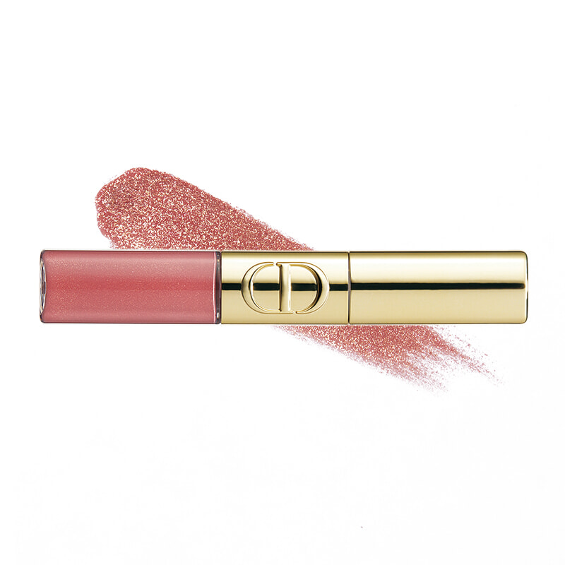 マットながら唇をすり合わせると大粒のグリッターが現れるリキッドルージュにグロスを重ねる2in1。全10色から優しいピンクを。