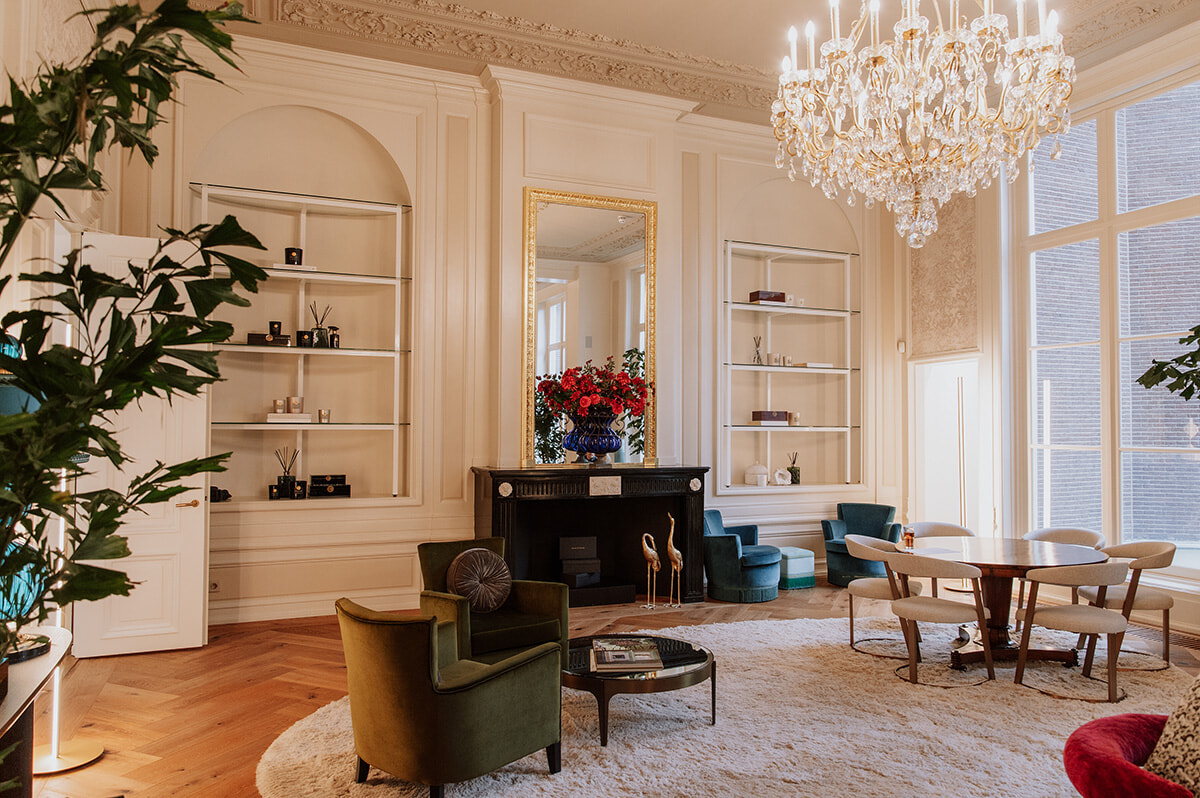 2020年、創業20周年を迎えたタイミングで、アムステルダム中心部、スパイ通りとカルフェル通りの角に誕生したのが、過去最大規模の旗艦店「ハウス オブ リチュアルズ」。19世紀末のネオ・ルネッサンス様式の建物を生かし、5フロア・総面積1,900㎡を誇る空間は、”日常のルーティンをより豊かな時間に変える”という創業者レイモンド・クルースターマンの哲学を体現。ショップであるだけでなく、スパやレストラン、チョコレートスタンド、テーマ別フォトブースまで備え、訪れる人を多角的にブランドの世界へと誘う。